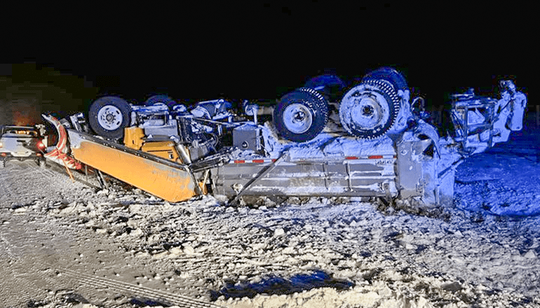 Snowy conditions lead to crash of MoDOT truck near Princeton